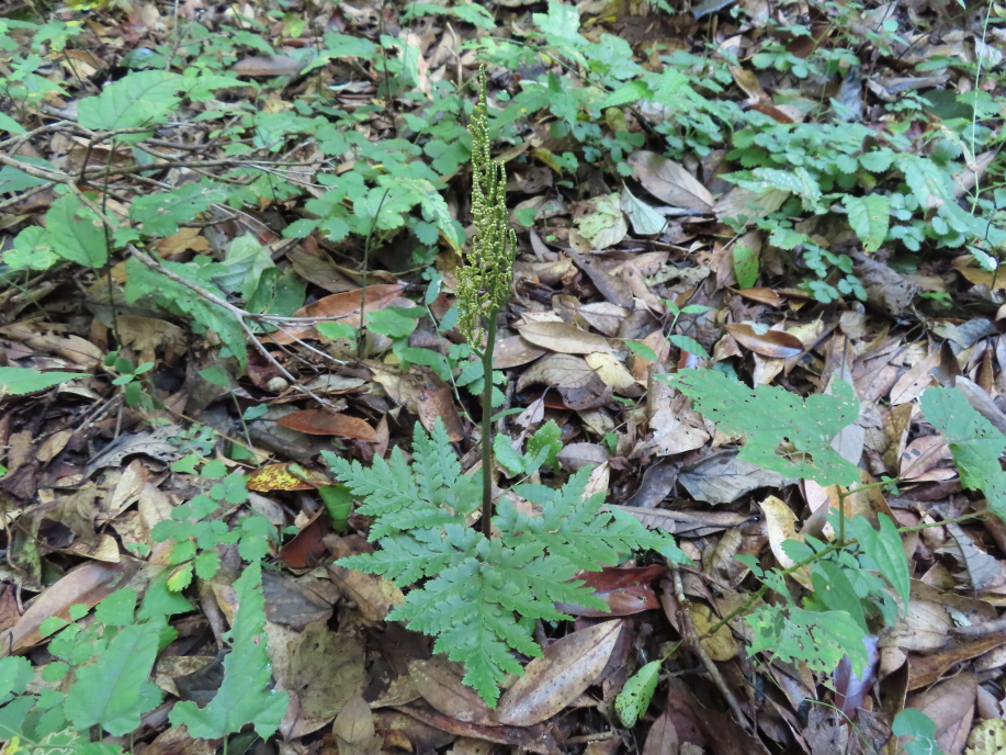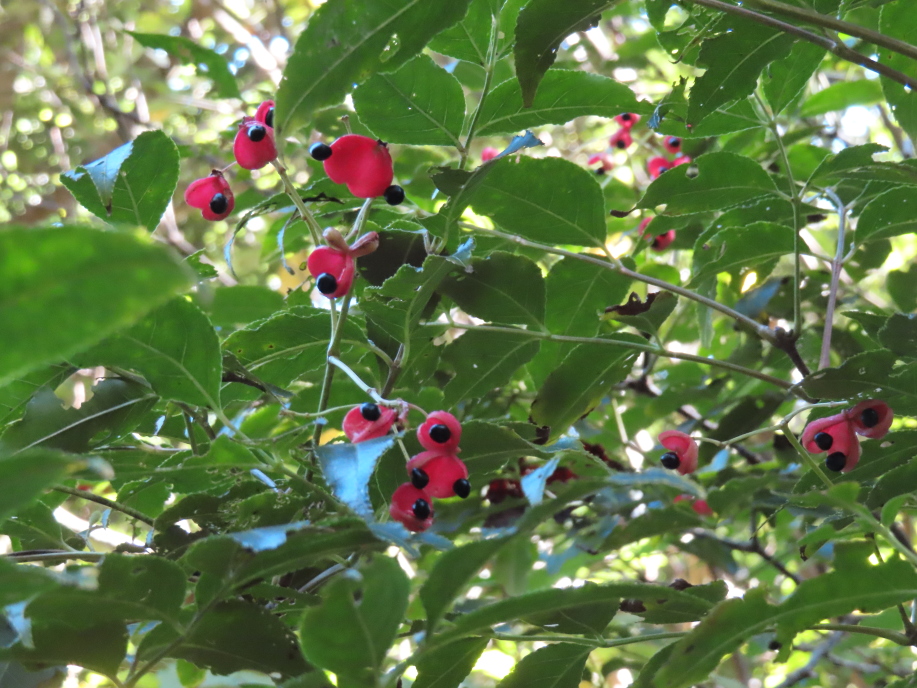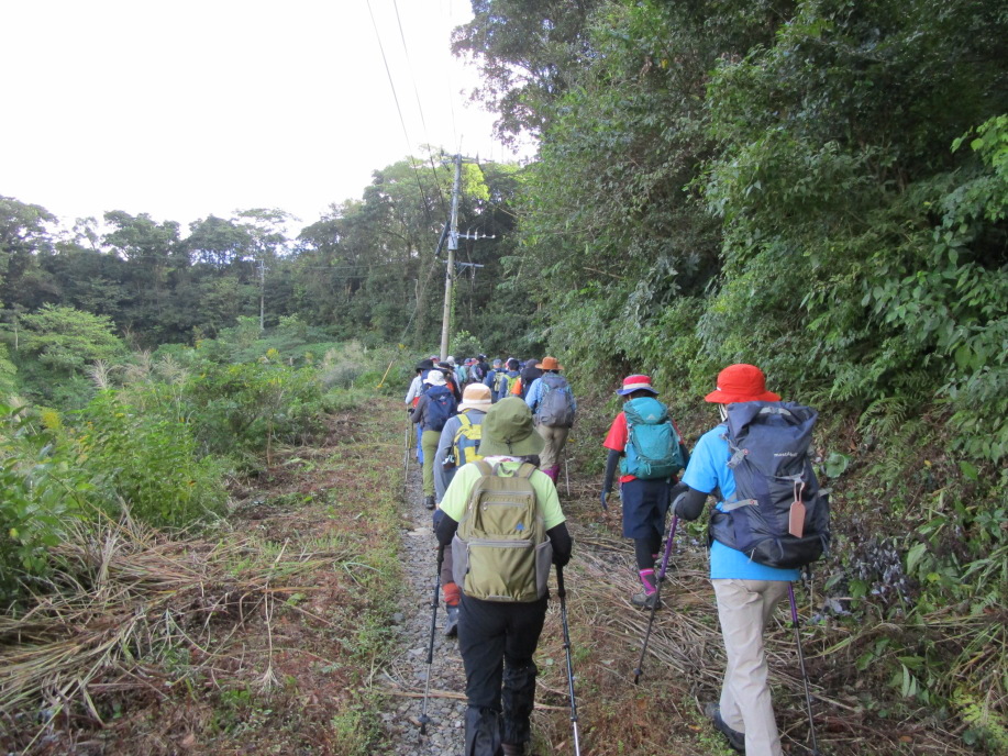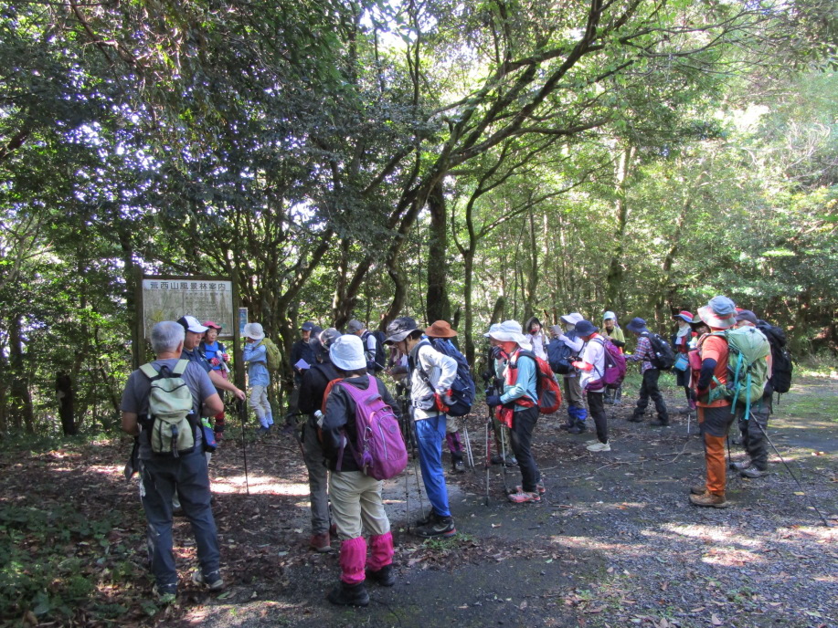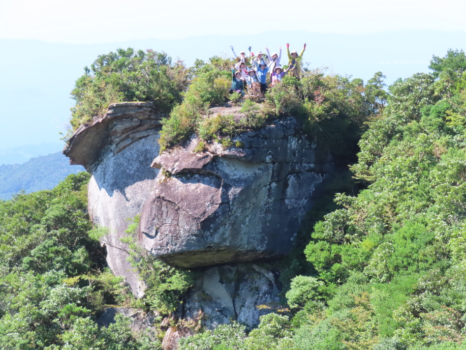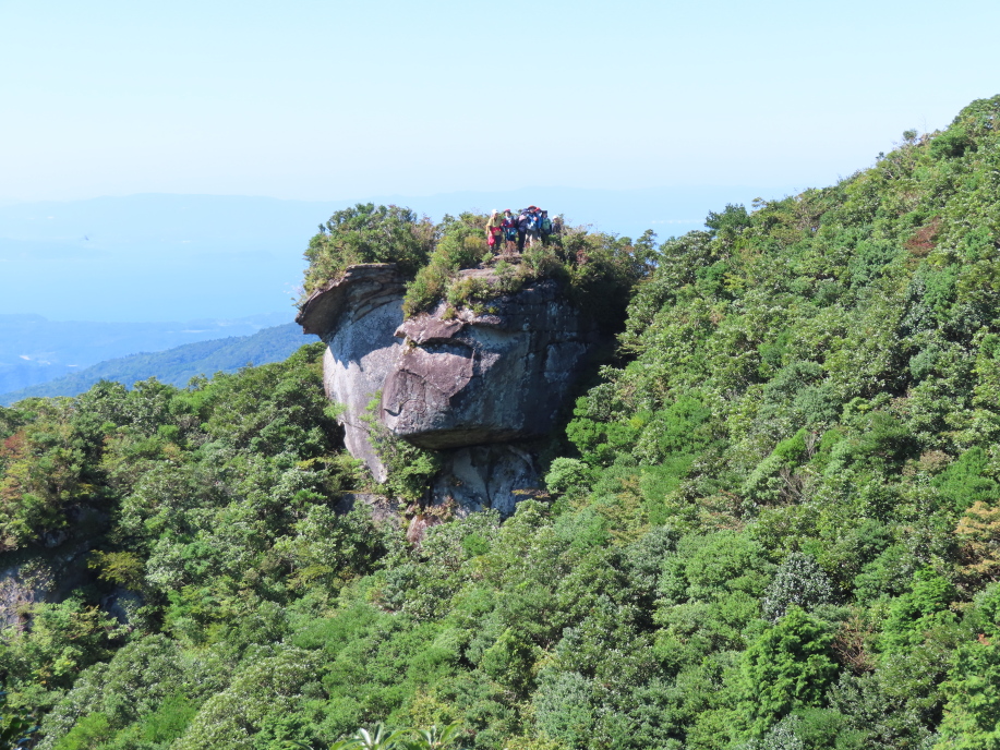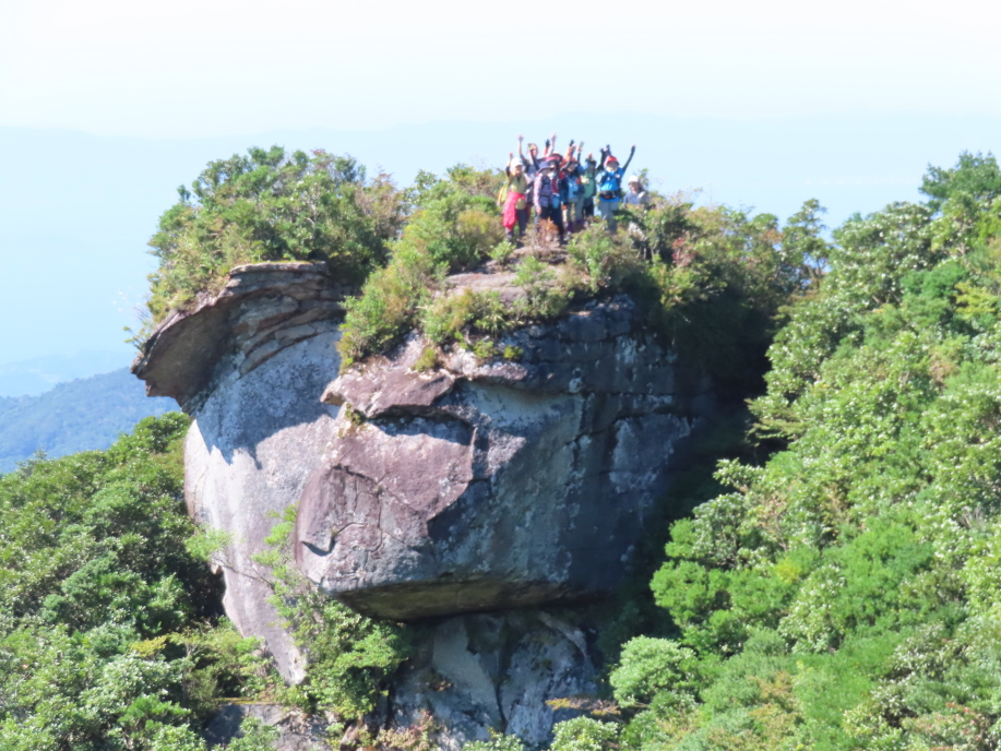 バス移動中の『錦江町の道の駅にしきの里』でトイレ休憩の時間に種子島からロケットが打上げされるという事で、しばらく探して見たものの、雲が多くて断念。その後のバス移動中に、ロケットの打ち上げあとに出来る雲は見られました。秋の山は面白い植物が多く、観察しながらの登山でした。平地では少し暑いくらいの気温でしたが、山頂付近まで標高を上げると少し肌寒く、天狗岩からの眺望も楽しめる楽しい登山会になりました。下山後はにしきの里で買い物を楽しみ、無事イベント終了となりました。