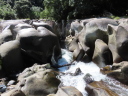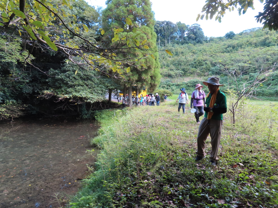 令和7年10月12日(日)照葉樹の森自然体感ウォーキング(高隈史跡巡り)『中津神社・観音渕・谷田の滝・ふれあいの森を歩こう♪』が開催されました。2日ほど前まで台風直撃コースかと心配していましたが、前日の予報では台風の進路が変わり良い天気になりました。高隈地区交流促進センターからスタートし、かぎ引き祭りで有名な中津神社へ、その途中に創建当時の中津神社があったという池ん湖を見学しました。中津神社には力石を発見しましたが、「腰を痛めたら歩けなくなる!」と挑戦者は現れませんでした。次の観音渕は湧き水が豊富で水筒に汲んだり、冷たさを楽しんだり、奥の水が湧き出す洞窟内でコウモリも発見しました。その後谷田の滝・ふれあいの森と歩き、「湧き水の水量がすごい!」「天気が良すぎて暑かった」「鹿屋にこんな場所があったとは知らなかった!」「たるたるぱあくで買い物しました!」と、無事イベント終了となりました。