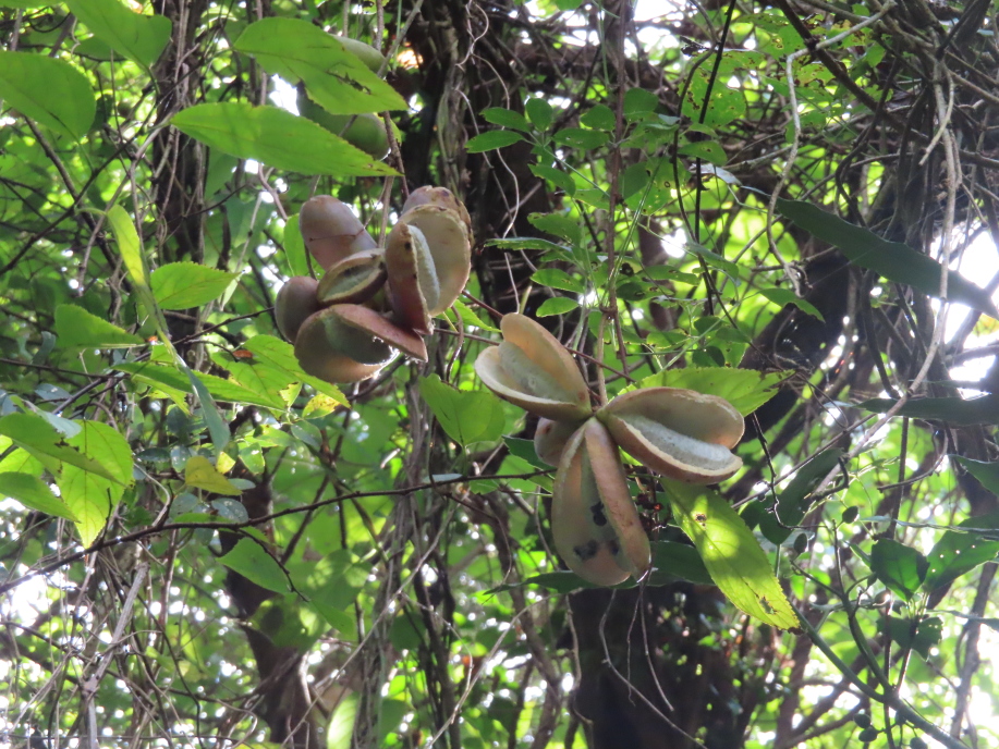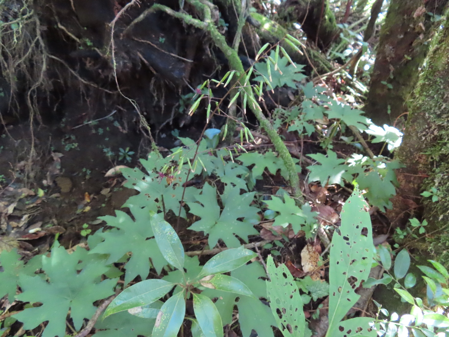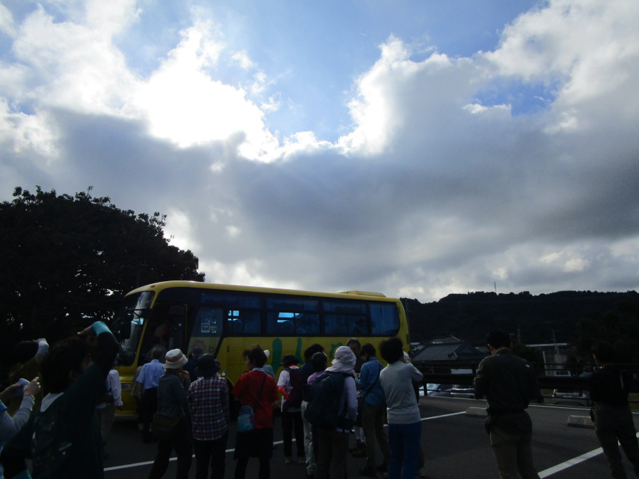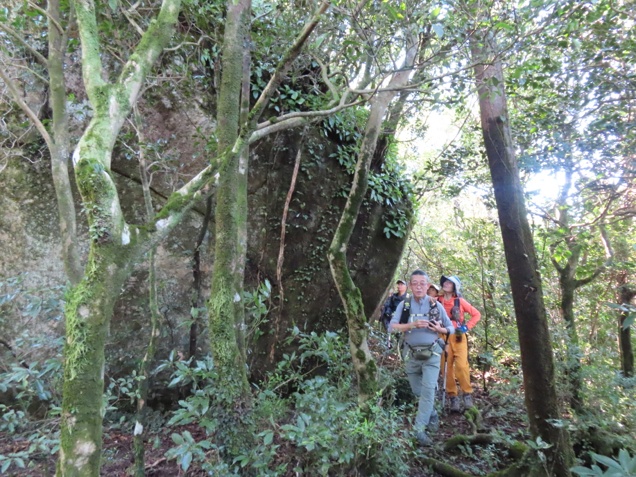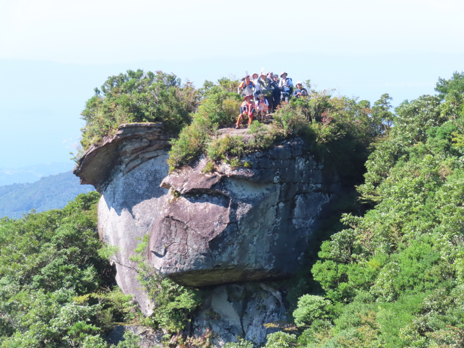 バス移動中の『錦江町の道の駅にしきの里』でトイレ休憩の時間に種子島からロケットが打上げされるという事で、しばらく探して見たものの、雲が多くて断念。その後のバス移動中に、ロケットの打ち上げあとに出来る雲は見られました。秋の山は面白い植物が多く、観察しながらの登山でした。平地では少し暑いくらいの気温でしたが、山頂付近まで標高を上げると少し肌寒く、天狗岩からの眺望も楽しめる楽しい登山会になりました。下山後はにしきの里で買い物を楽しみ、無事イベント終了となりました。