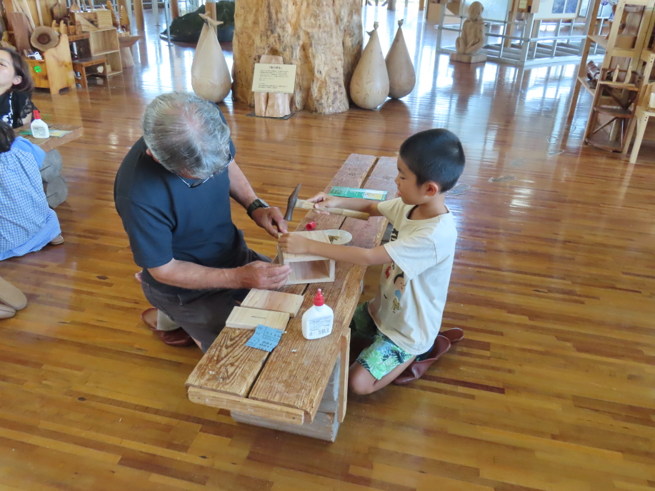 標高800mに位置するビジターセンターは平地よりも5℃ほど涼しく、快適な環境で工作を楽しみました。
