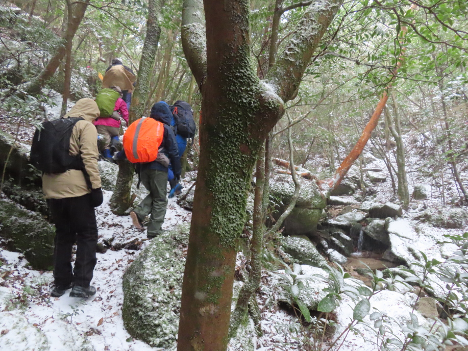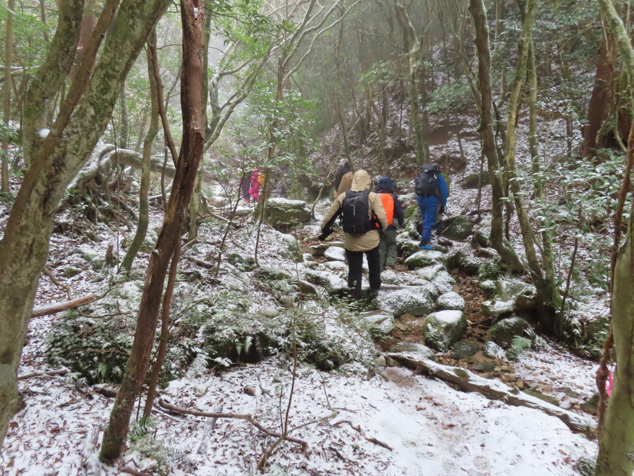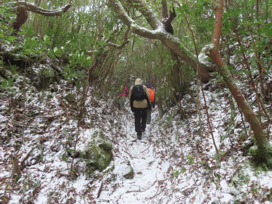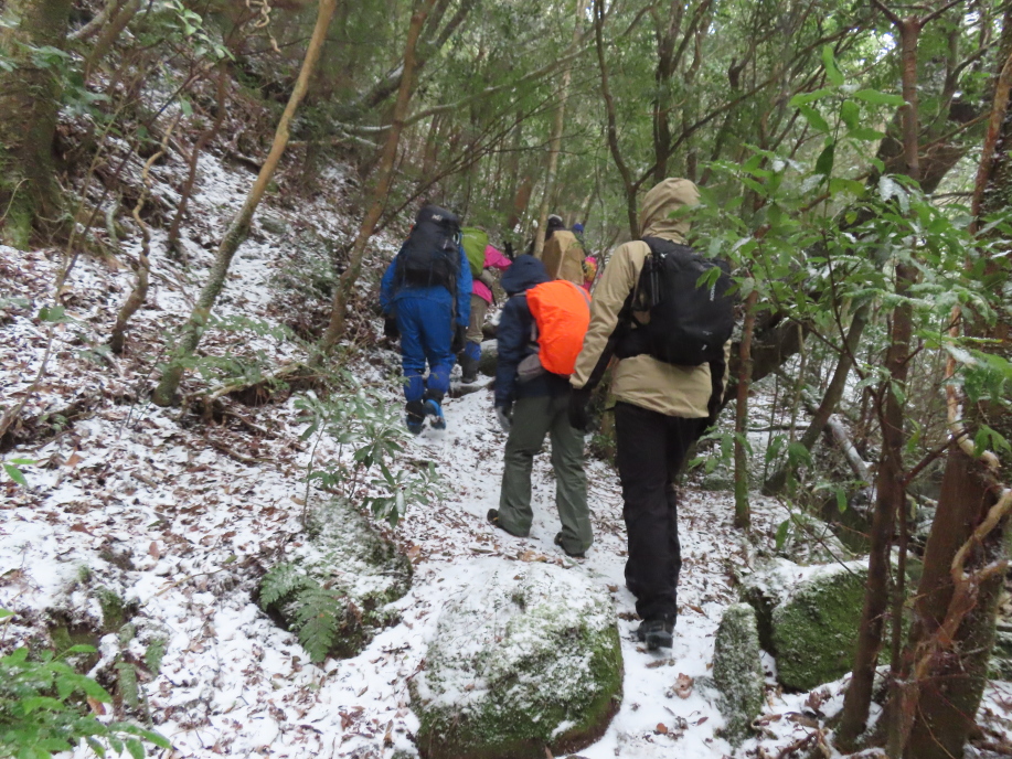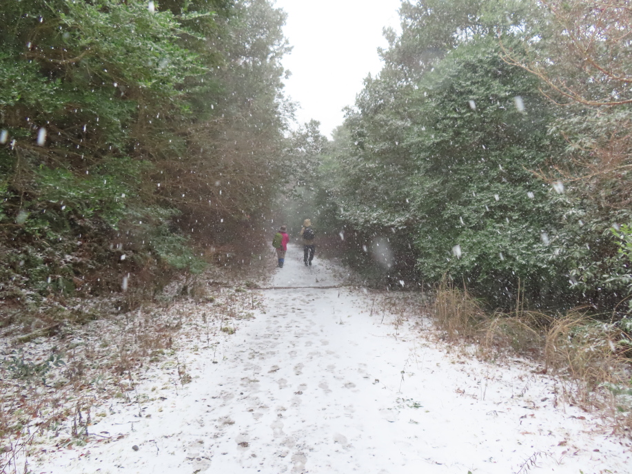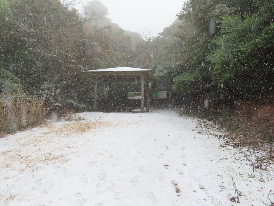 令和8年1月11日(日)、照葉樹の森月例登山会(稲尾岳)『安全祈願!稲尾神社へ初詣登山に出かけよう!』が開催されました。雪が降る中の登山会となり、安全を考慮して自然石展望台から稲尾神社に向かって安全祈願をする短縮コースで実施しました。登山口までの取り付け道路では思いのほかしっかりと雪が降っていましたが、登山道に入ると照葉樹の森の木々が雨風から守ってくれて快適に歩くことが出来ました。自然石展望台の景色は真っ白だったのですが「今年も安全に登山が出来ますように」と稲尾神社に向かって祈願をし、ちょうど昼ごろに下山したビジターセンターでお弁当を食べ、無事にイベント終了となりました。